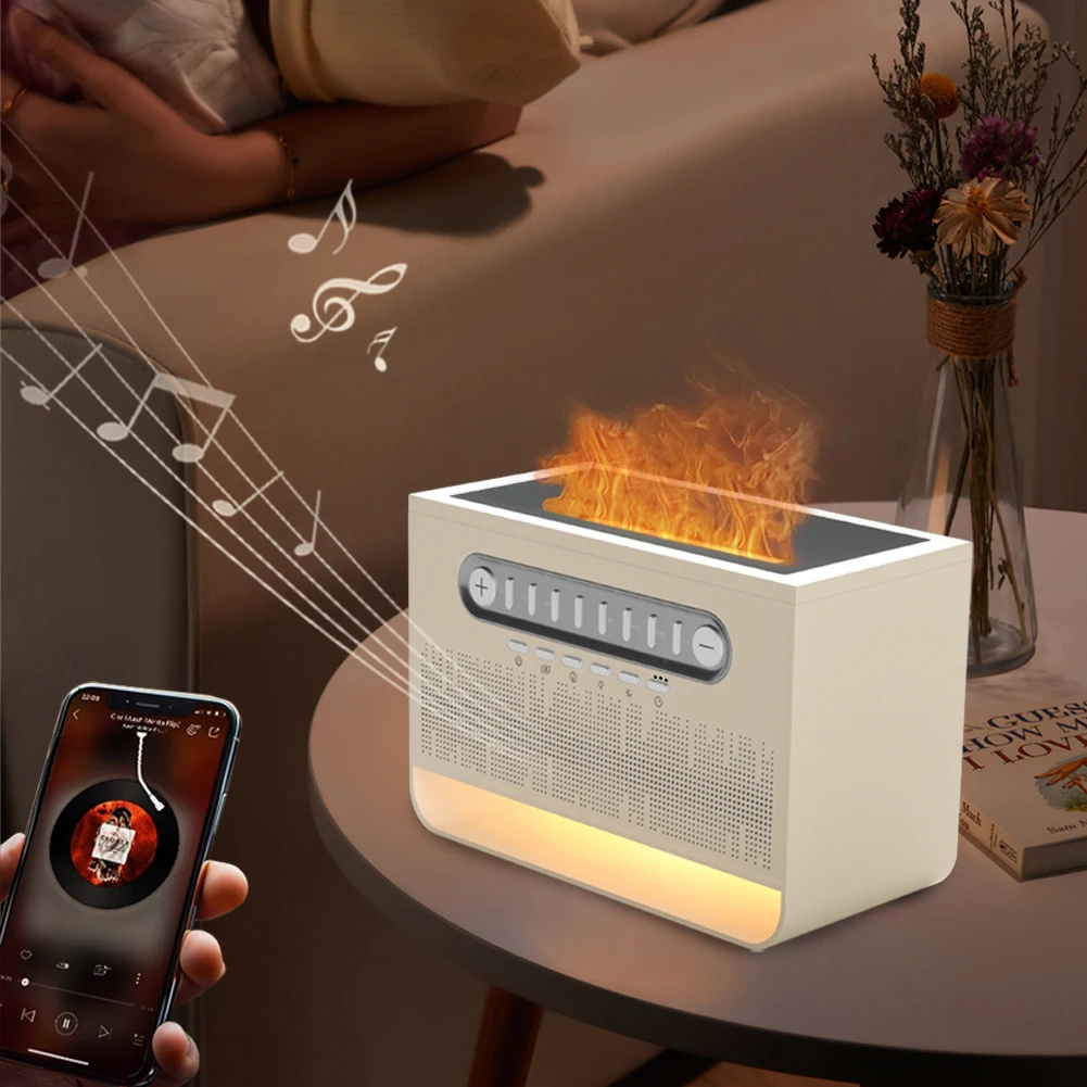 1. Realistic Flame Mist Effect: Experience the sound machine's unique visual treat with the flame mist effect, combining water vapor and lighting to create a cozy, dreamlike atmosphere. This feature enhances relaxation by engaging both sight and senses, perfect for unwinding after a long day.