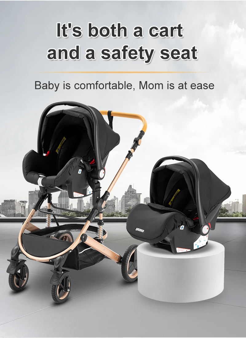 Compact 3-in-1 baby pushchair, infant car seat, portable infant travel system, lightweight pushchair, two-way pushchair