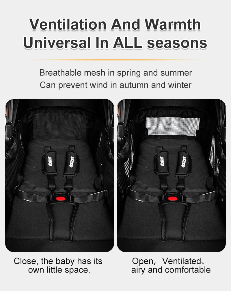 Stroller frame, 2 in 1 basket, baby safety seat, 4 wheels, armrest, basket adapter, foot cover, cup holder, cotton pad, Mummy Bag, Rain cover, Mosquito net, cooling mat.